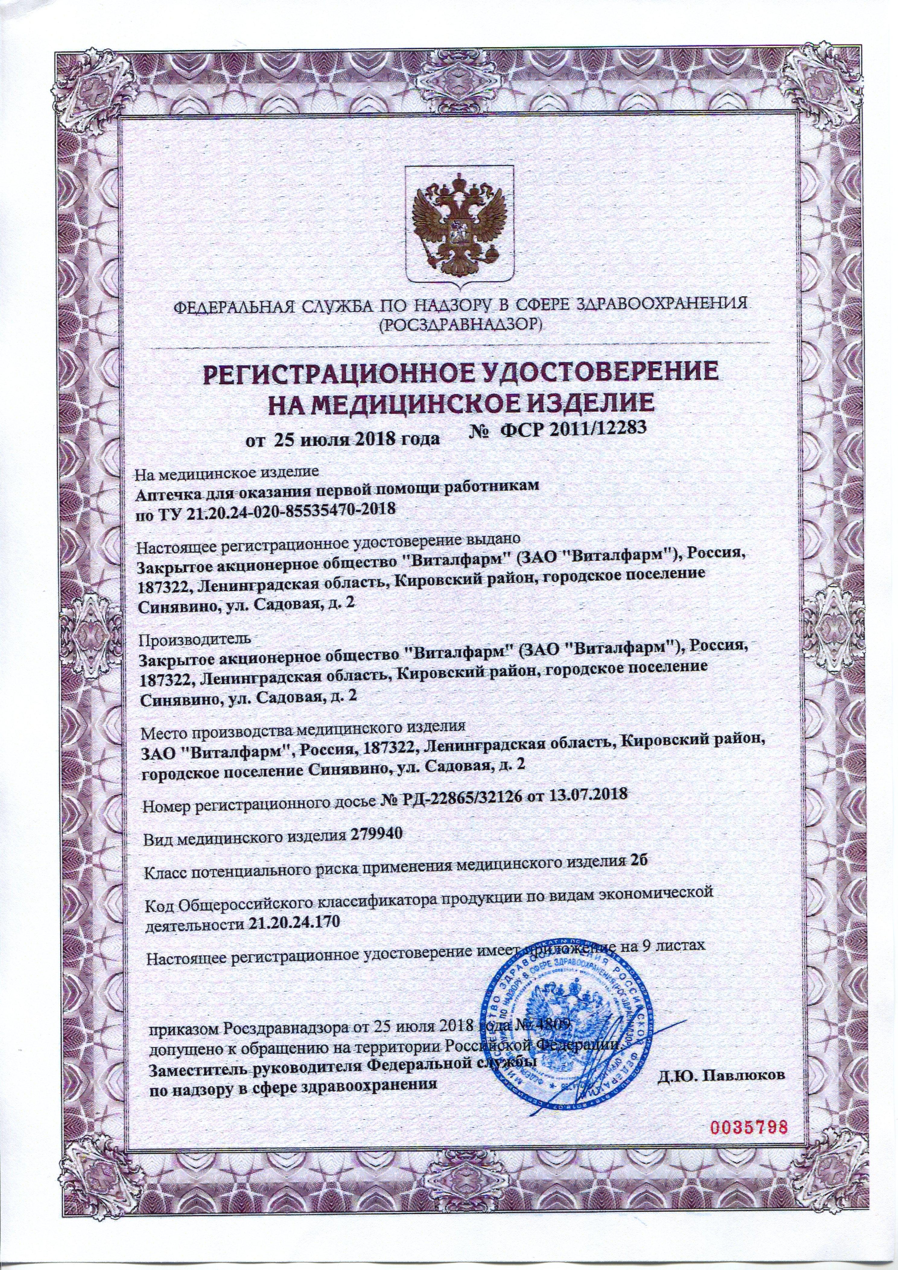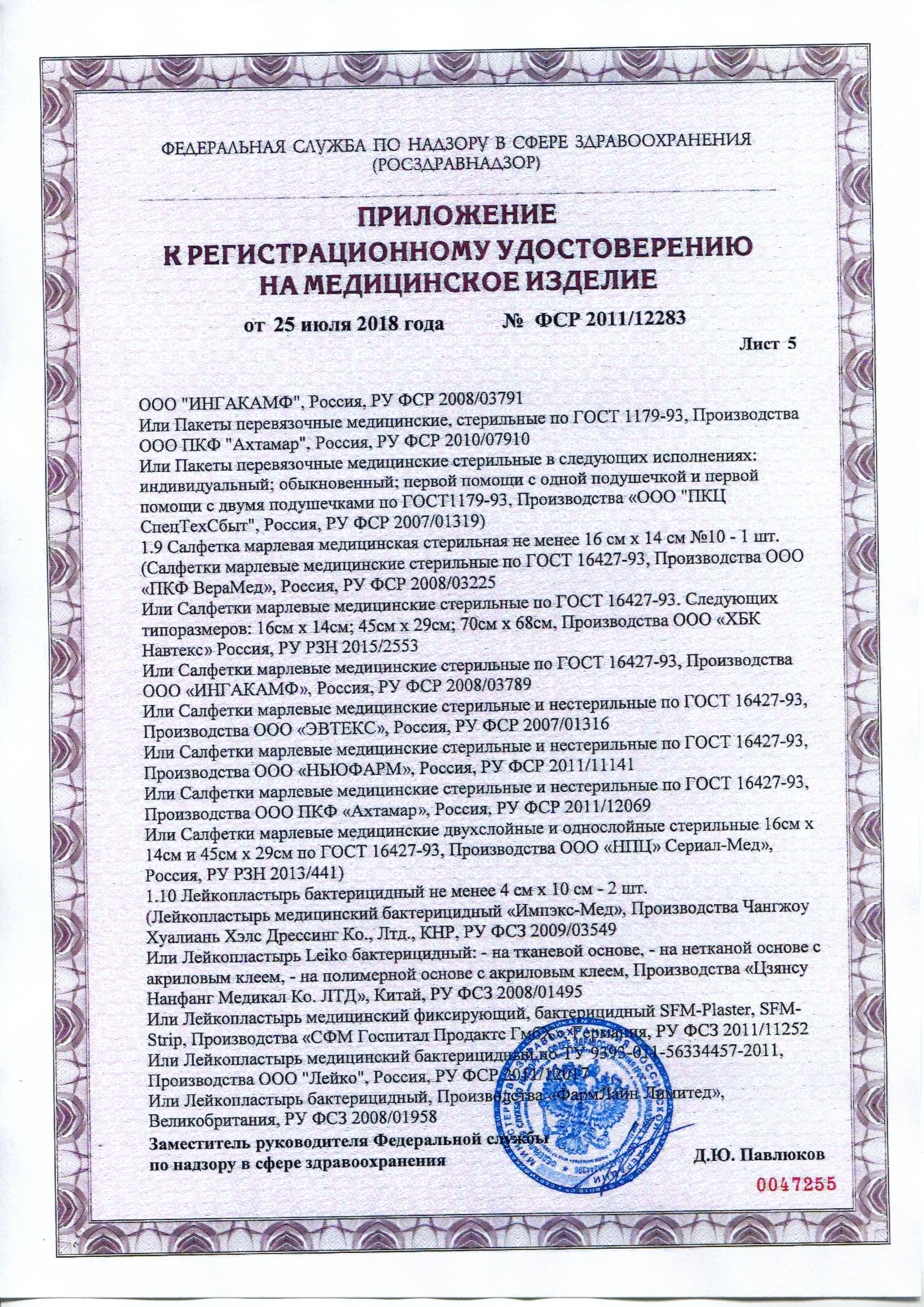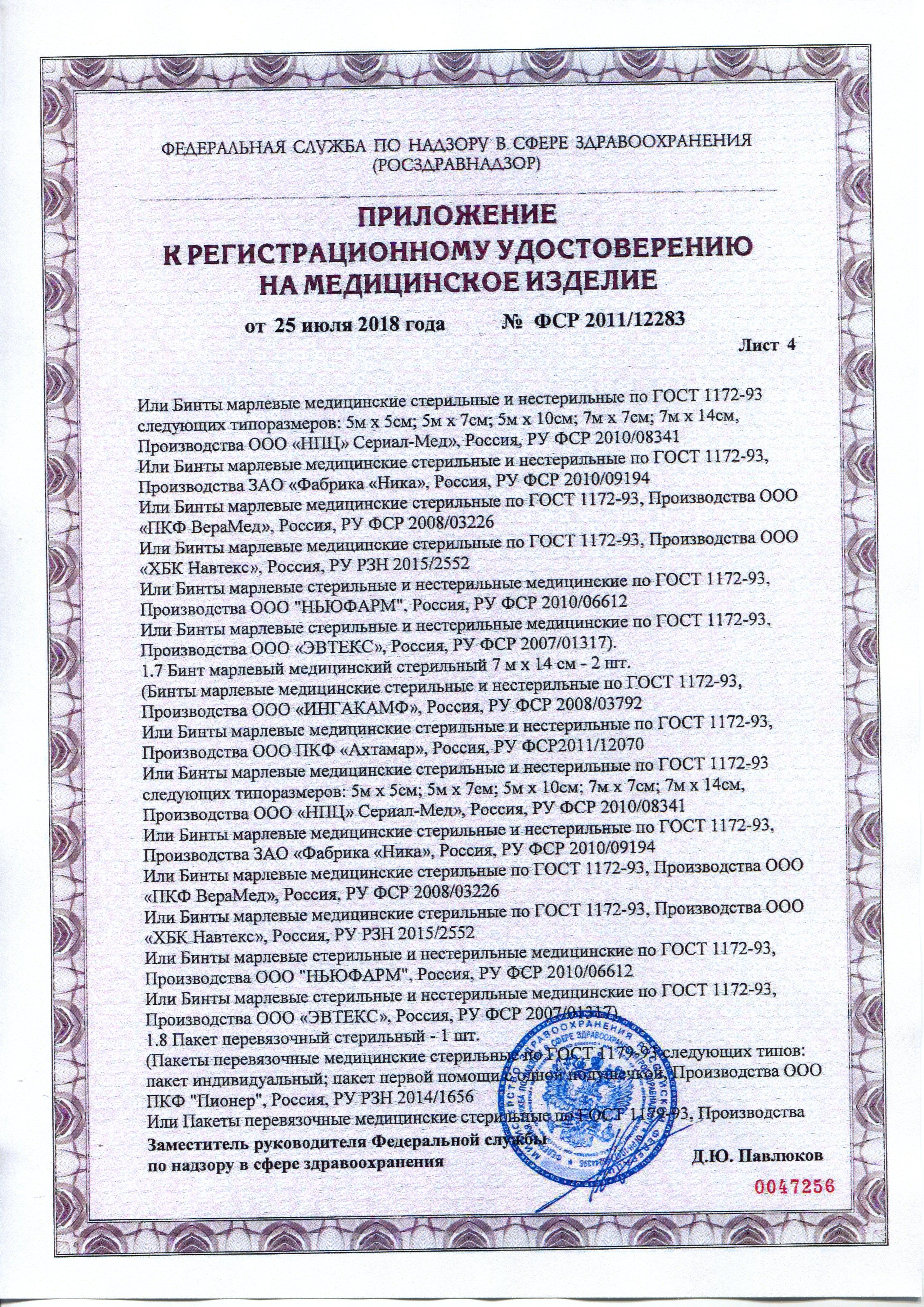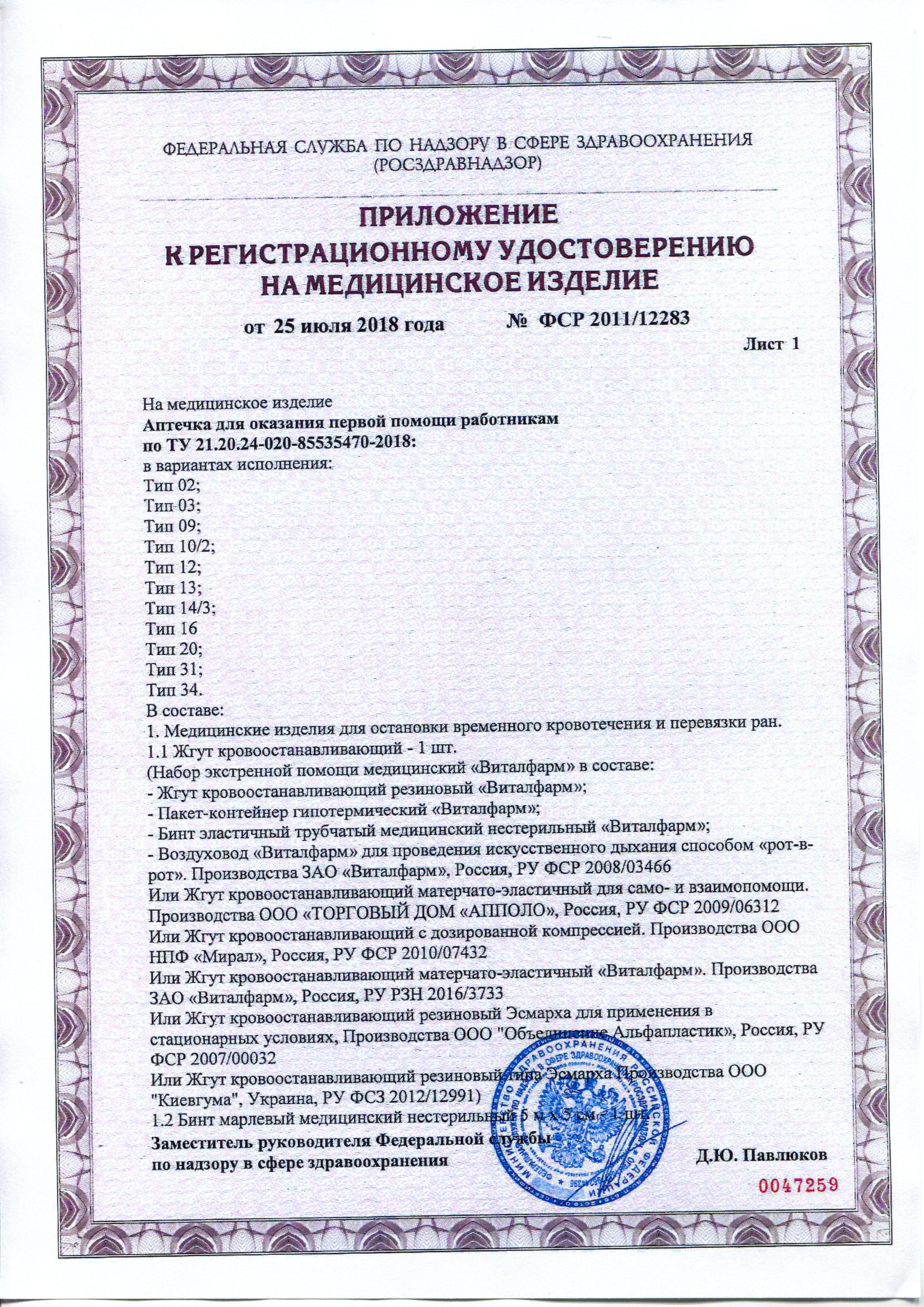1. Пакет перевязочный стерильный с 1 подушечкой 1 шт.
