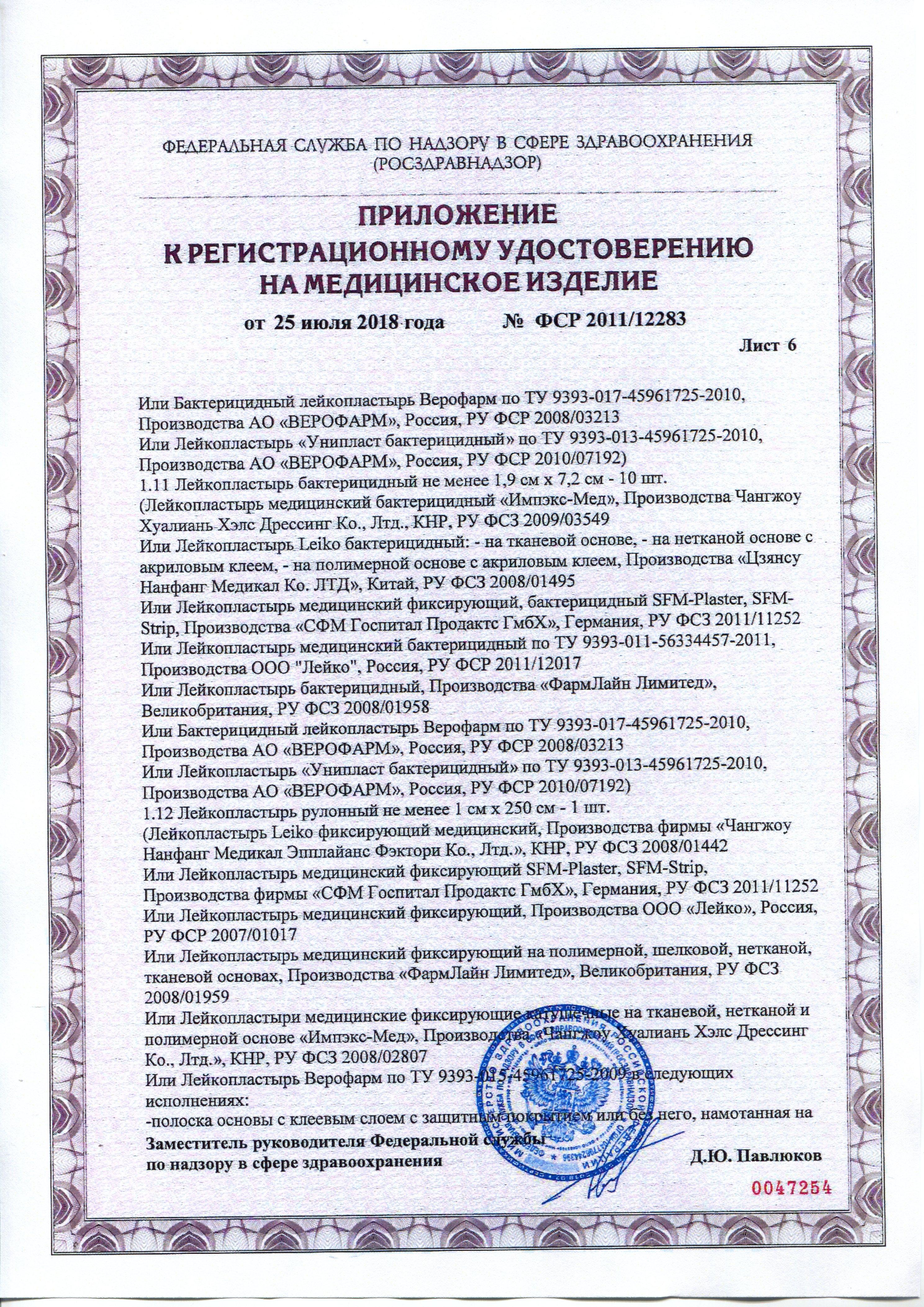 9. Лейкопластырь бактерицидный не менее 1,9x7,2см 4 шт.