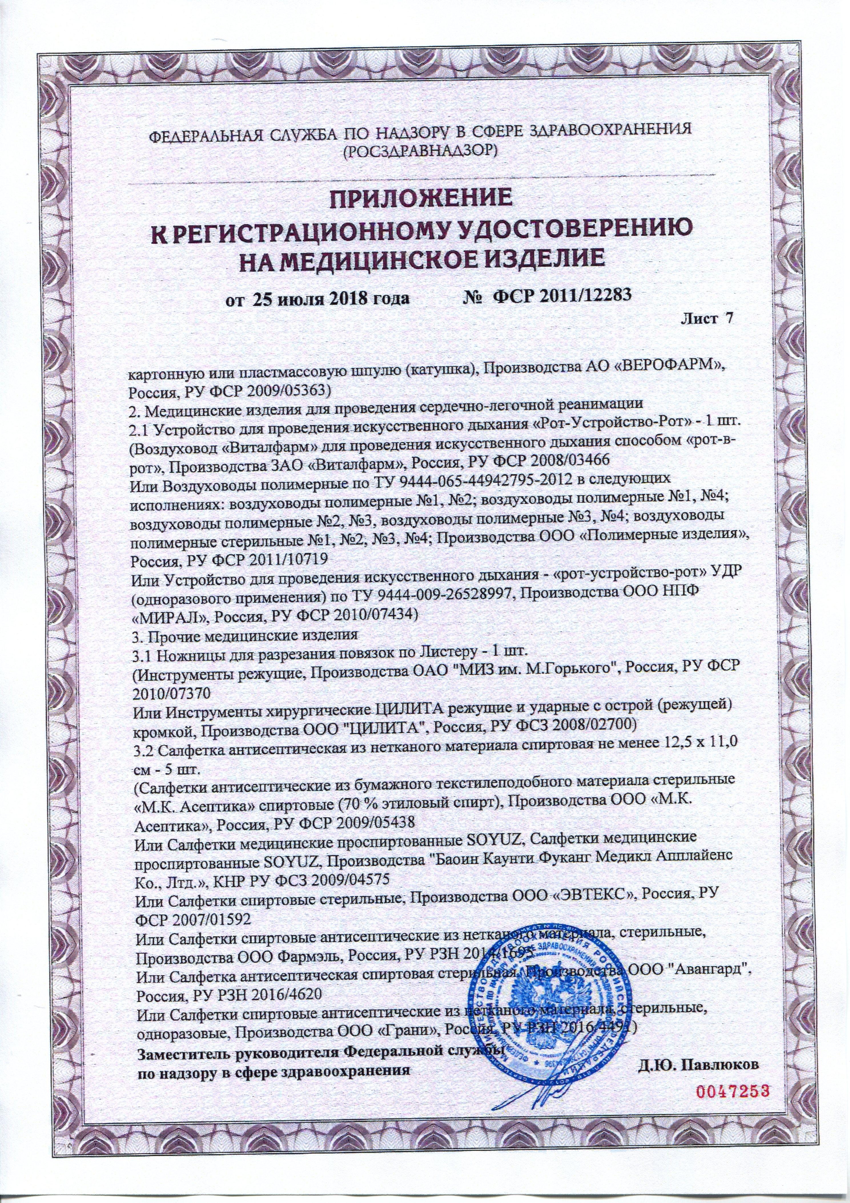 2. Бинт марлевый медицинский н/с не менее 5x7 см 1 шт.