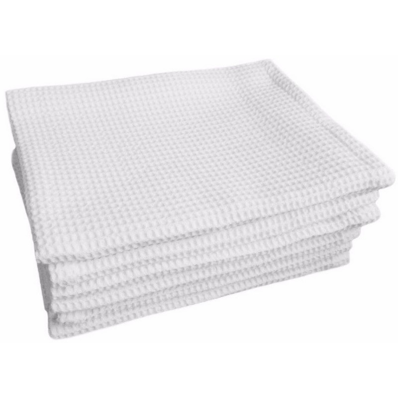 Полотенце вафельное 35x80 см 120 г/кв. м белое 10 штук в упаковке Полотенце произведено из 100% хлопчатобумажного отбеленного полотна, имеет два обработанных края - по длинной стороне. Вафельные полотенца универсальны, но чаще всего их используют хозяйки на кухнях, для бытовых и хозяйственных потребностей, применяется в промышленности. Благодаря особенному, перекрестному, 'вафельному' плетению нитей хлопка, эти полотенца долго не истираются и сохраняют первоначальный вид. Полотенце способно удалить любые виды жидкостей и загрязнений, так как имеет прекрасные впитывающие способности, просто отжимается, быстро высыхает. Размер:35x80 см. Состав ткани: 100% хлопок. Рекомендации по уходу:стирают вафельные полотенца при 40 градусах руками или в машине. При этом для них подходит любое моющее средство. Сушить полотенца из хлопка важно на открытом воздухе. Гладить полотенца из хлопка нужно паровым утюгом. Упаковка: прозрачный пакет ПП. Внимание! Перед использованием обязательна стирка!