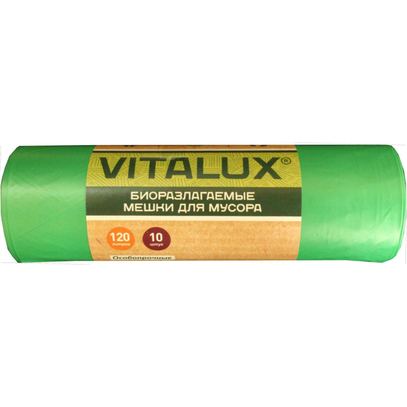 Мешки для мусора ПНД 120л 17мкм 10шт/рул зеленые 70x105см VitaLux Bio