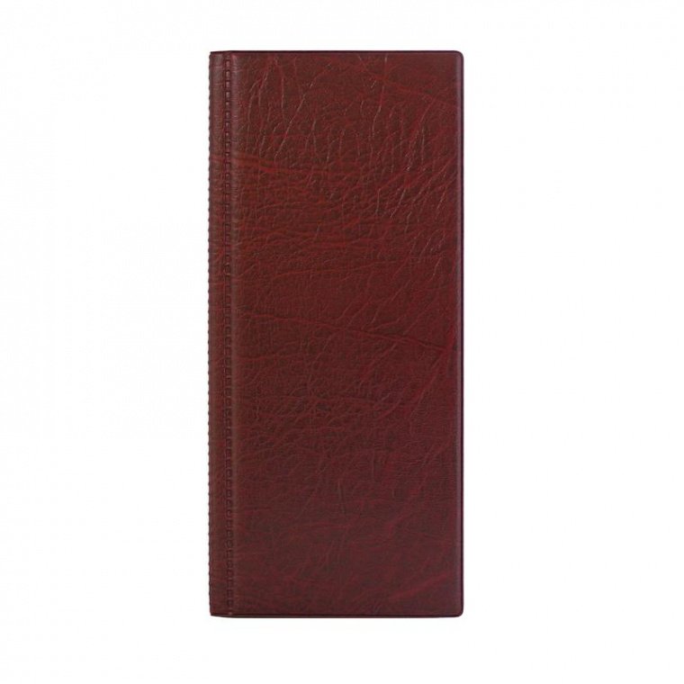 Вертикальная настольная визитница Attache изготовлена из ПВХ высокого качества бордового цвета, размер — 110×250 мм. Имеет внутренний блок на 96 визиток. Карманы для визиток изготовлены из прозрачного полипропилена. Размер карманов: 100×56 мм. На обложку визитницы можно нанести логотип любым способом тиснения. Каждое отделение предполагает возможность хранения 2-х визиток.