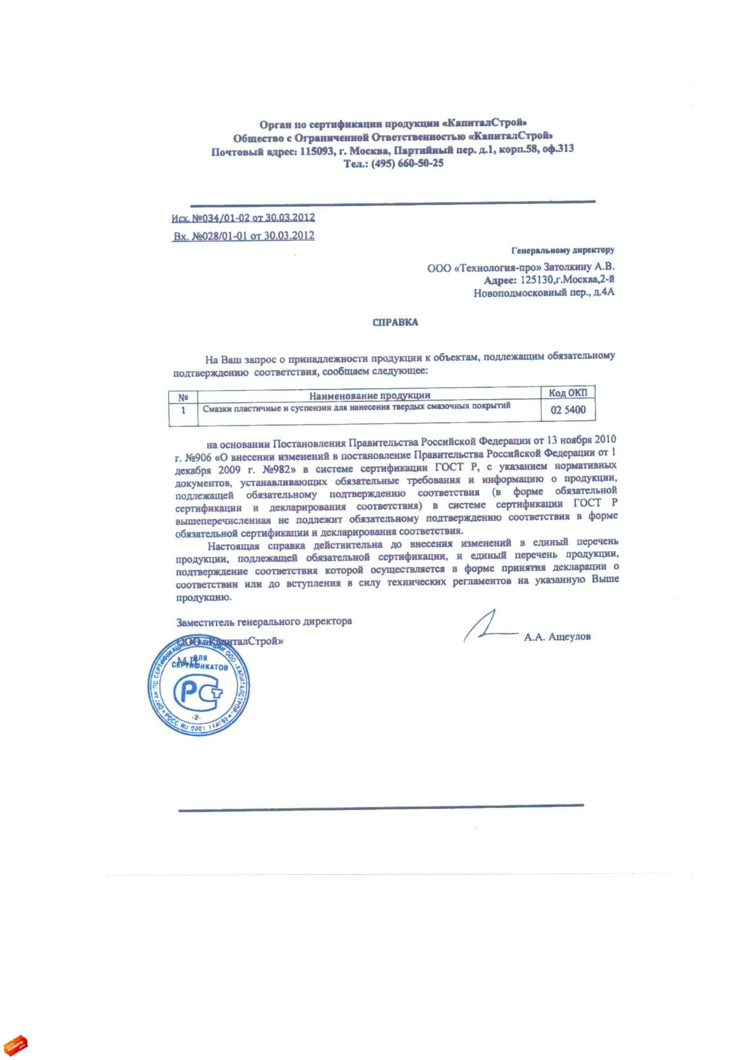 Сертификат на товар - Масло для уничтожителей документов (шредеров) Гелеос 250 мл