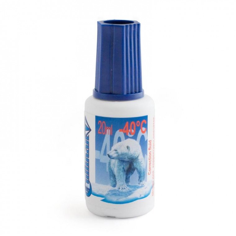 Корректирующая жидкость применяется для корректировки всех типов документов, включая бумагу для факсов. Ложится ровным гладким слоем, создает непрозрачное покрытие. Имеет водную (эмульсионную) основу. Температура при транспортировке — до — 40 градусов Цельсия. Вид кисточки — ворс. Объем флакона с корректирующей жидкостью составляет 20 мл.