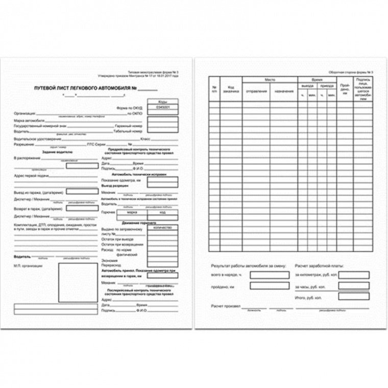 Бланк Путевой лист легкового автомобиля форма №3 газетная бумага А5 (140х195 мм, 20 блоков по 100 листов)