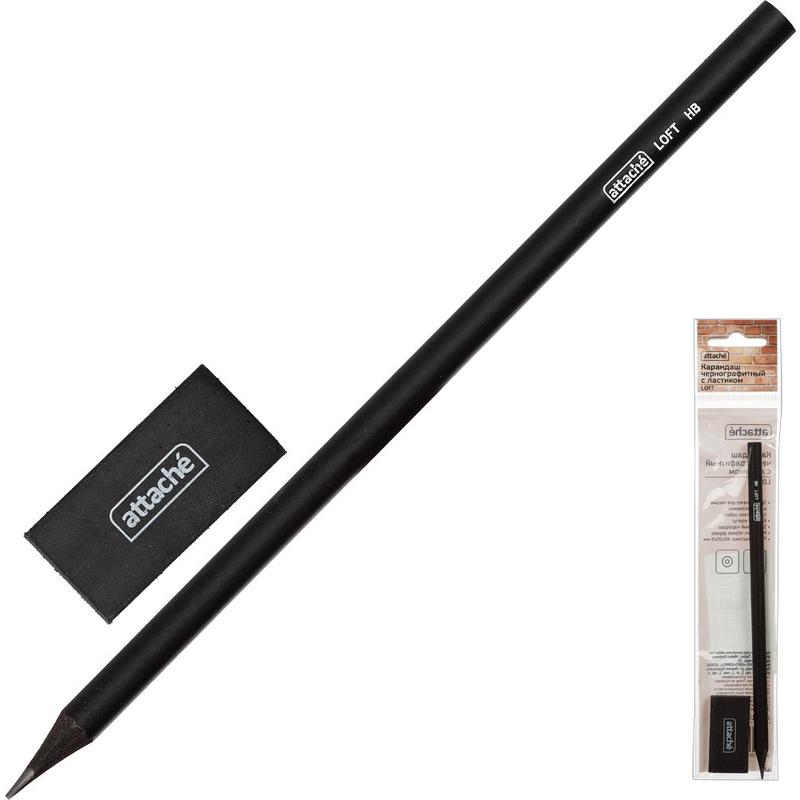 Карандаш чернографитный Attache Loft HB заточенный (в упаковке карандаш + ластик)