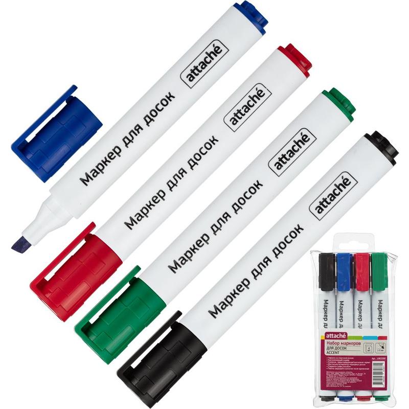 Набор маркеров для досок Attache Accent 4 цвета (скошенный наконечник, толщина линии 1-5 мм)