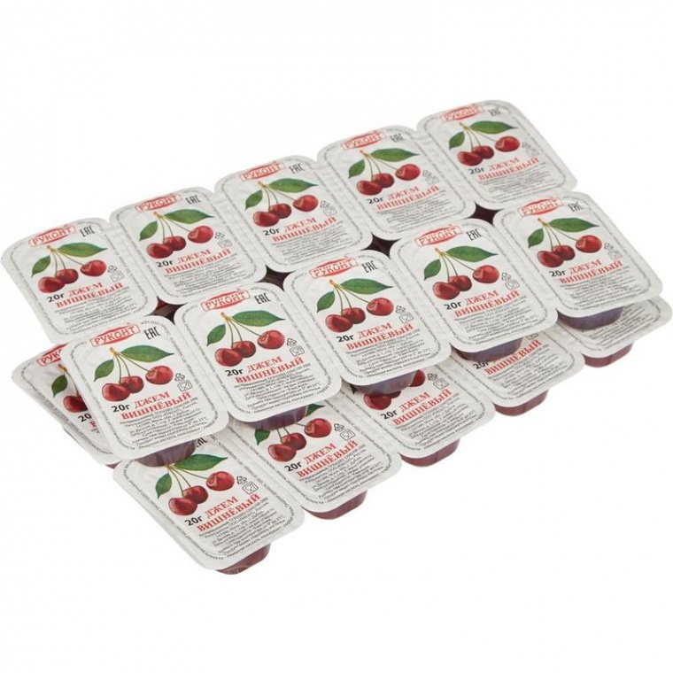 Джем порционный «Руконт» вишня 20 г (20 штук в упаковке) — высококачественный продукт, расфасованный в разовые контейнеры. Вишня благотворно воздействует на общее состояние организма, укрепляет иммунитет, стимулирует обменные процессы и сводит к минимуму риск развития онкологических заболеваний. Кроме того, джем обладает способностью уничтожать вредоносные бактерии и помогает при простудных заболеваниях, оказывая активное отхаркивающее действие. Пектины понижают уровень холестерина, улучшают пищеварение и нормализуют перистальтику кишечника. В производстве использованы экологически чистые натуральные ягоды.