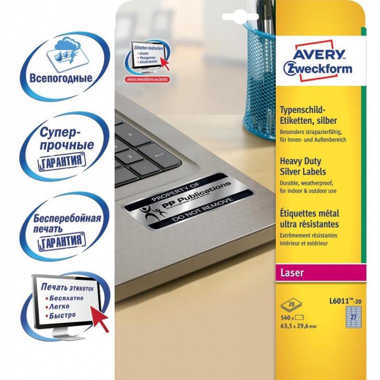 • Этикетки из прочной полиэстерной пленки серебристного цвета — идеальный вариант для маркировки инвентаря, электронных компонентов, указания паспортных данных, инвентарной описи.