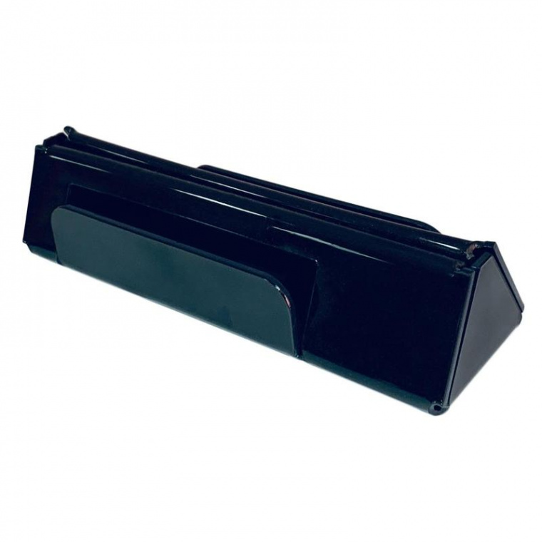 Подставка Attache настольная для рекламных материалов. Двухсторонняя, универсальная. Имеет визитницу. Выполнена из акрила. Цвет — черный. Подставка вертикальная. Предназначена для установки информации из картона или ламинированной бумаги форматов А5, А6, 1/3 А4 Евро. Имеет два кармана глубиной 10 мм, для вложения визиток. Размер изделия — 40×45×155 мм. Поставляется в защитной пленке.