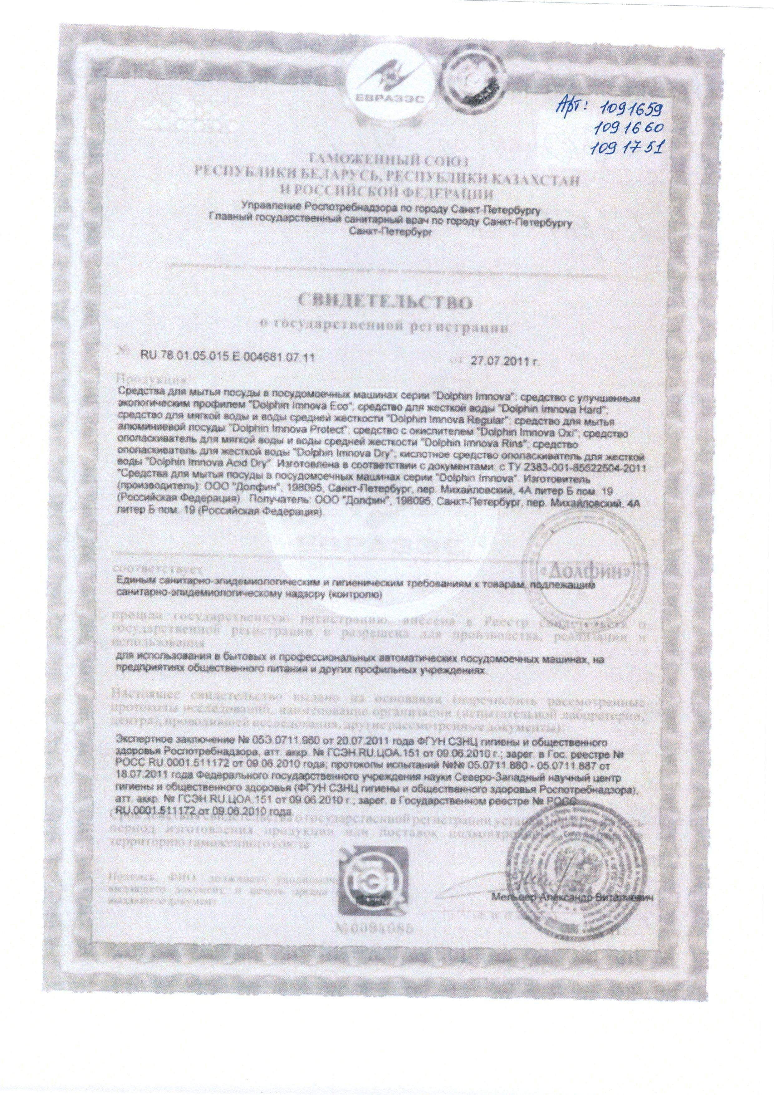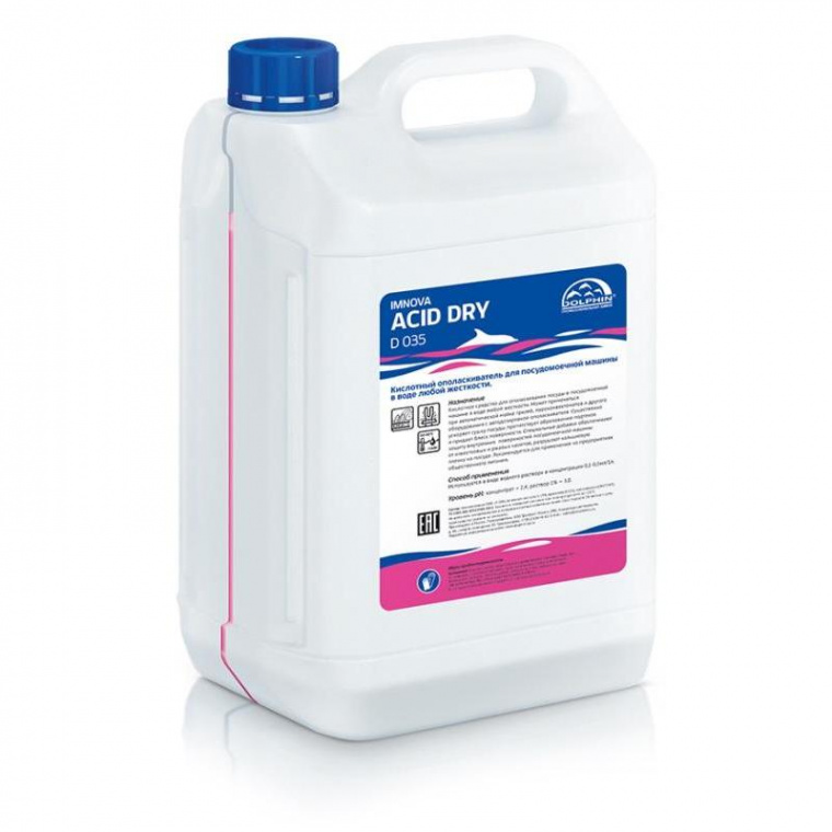 Кислотное средство для ополаскивания посуды в посудомоечной машине в воде любой жесткости. Существенно ускоряет сушку посуды, препятствует образованию подтеков и придает блеск поверхности. Специальные добавки обеспечивают защиту внутренних поверхностей посудомоечной машины от известковых и ржавых налетов, разрушают кальциевую пленку на посуде. Может применяться при автоматической мойке грилей, пароконвектоматов и другого оборудования с автодозировкой ополаскивателя. Рекомендуется для применения на предприятиях общественного питания. Разрушает кальциевую пленку на посуде.