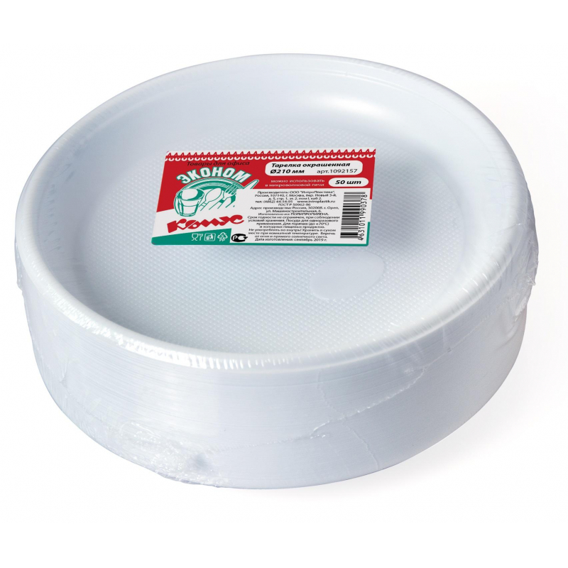 Тарелка одноразовая 'Комус Эконом' пластиковая белая 210 мм 50 штук в упаковке Одноразовые тарелки 'Комус Эконом' подходят как для холодных, так и для горячих блюд. Максимальная температура используемых пищевых продуктов +75 °С. Предназначены для корпоративных мероприятий любого формата, выездов на природу, пикников. Материал экологически безопасен, не выделяет токсических веществ при взаимодействии с горячей пищей, не представляет опасности для жизни, здоровья потребителя и окружающей среды. Хранить в сухих помещениях, вдали от нагревательных приборов в условиях, исключающих воздействие агрессивных сред и горючих жидкостей. Не допускать воздействия прямого солнечного света. Изделия готовы к применению без предварительного промывания водой, подходят для разогрева еды в микроволновой печи. Изготовлены из белого высококачественного пластика (полипропилена). Диаметр тарелки: 210 мм. Поставляются упаковками по 50 штук. Товар произведен под контролем 'Комус'. Мы специально позаботились о Партнерах, которые превыше всего ценят качество и комфорт, и разработали линейку одноразовой посуды самых востребованных размеров для обеспечения быстрого питания в офисе, образовательных и производственных учреждениях, сферы гостеприимства и общественного питания и многих других. Производство расположено в России, что гарантирует постоянный контроль качества и оптимальные цены.