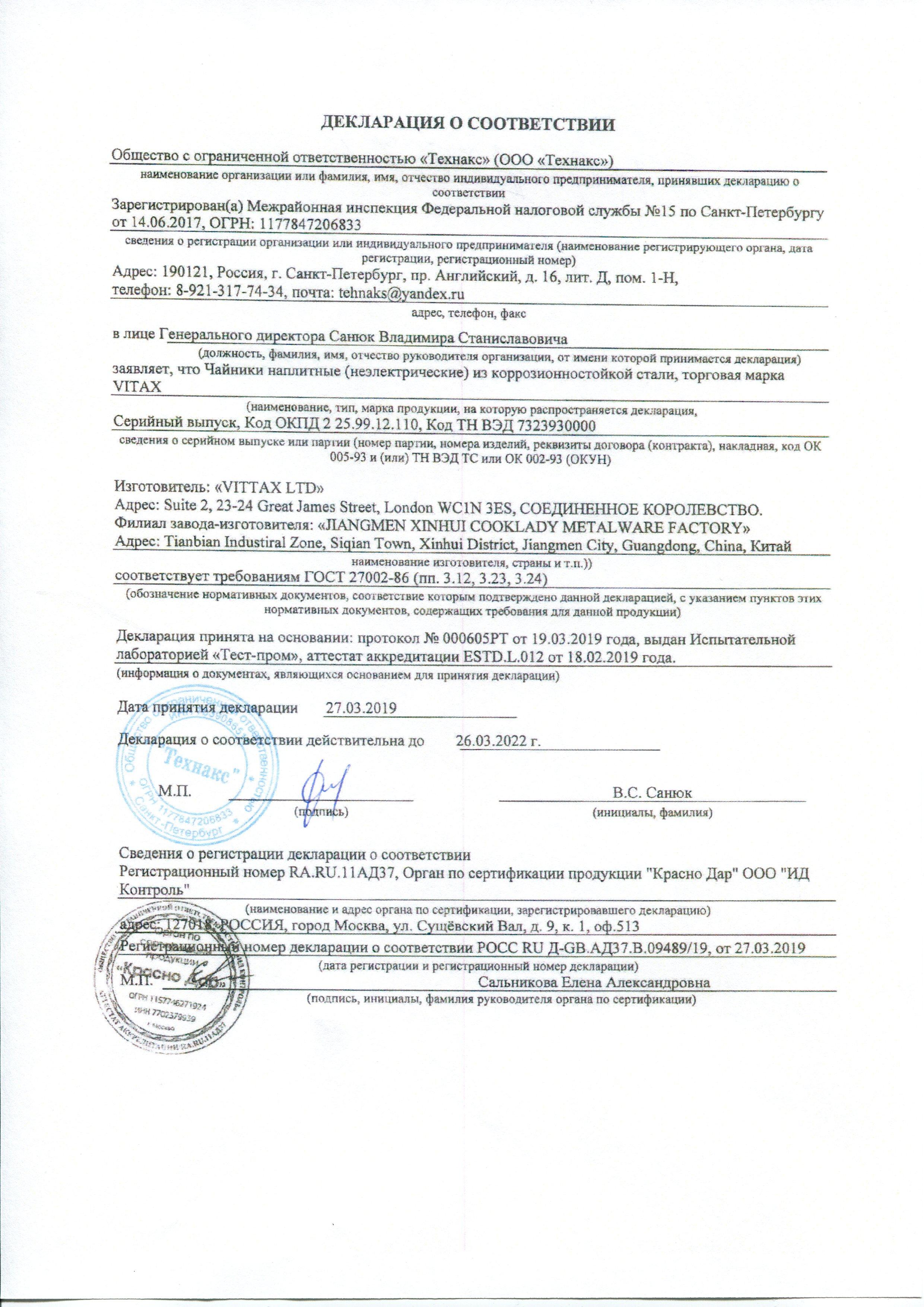 Сертификат на товар - Чайник заварочный Vitax Warkworth 4в1 VX-3307 1100 мл