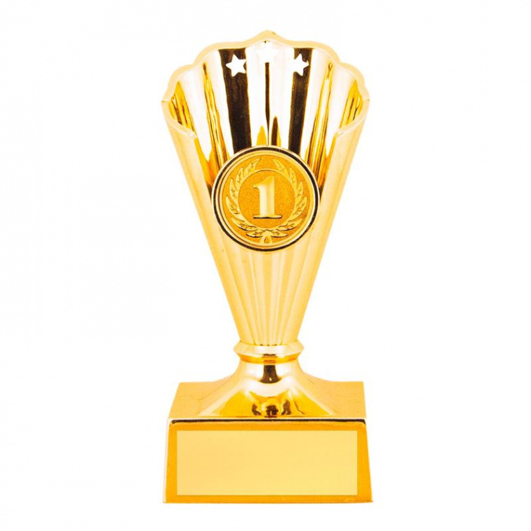 Кубок из металлизированного пластика на пластиковом основании без крышки.