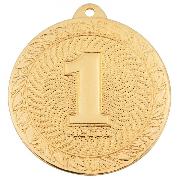 Медаль металлическая с высококачественным покрытием под золото и полировкой, с рельефом в центральной части в виде арабской цифры «1». Под цифрой расположен текст «место», выполненный поднятым полированным металлом. Цифры находятся на фоне поля, имеющего рельефный рисунок в виде хаотично направленных полос. По канту рельефный рисунок в виде лавровых ветвей, направленных вверх из центра нижней части медали, где их переплетает лента.