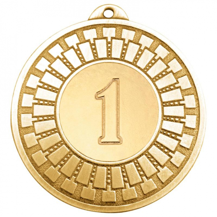 Медаль металлическая с высококачественным покрытием под золото. В центре аверса медали изображена арабская цифра «1». Пространство центральной части медали заполнено рельефом в виде прямоугольников, расходящихся лучами в разные стороны, направленными от центра медали к ее контуру. Реверс медали с декором в виде двух лавровых ветвей, направленных вверх из центра нижней части медали вдоль контура реверса медали. В верхней части медали выступающее круглое ушко под карабин для крепления ленты. Внешний диаметр медали — 50 мм, толщина — 1,2 мм.