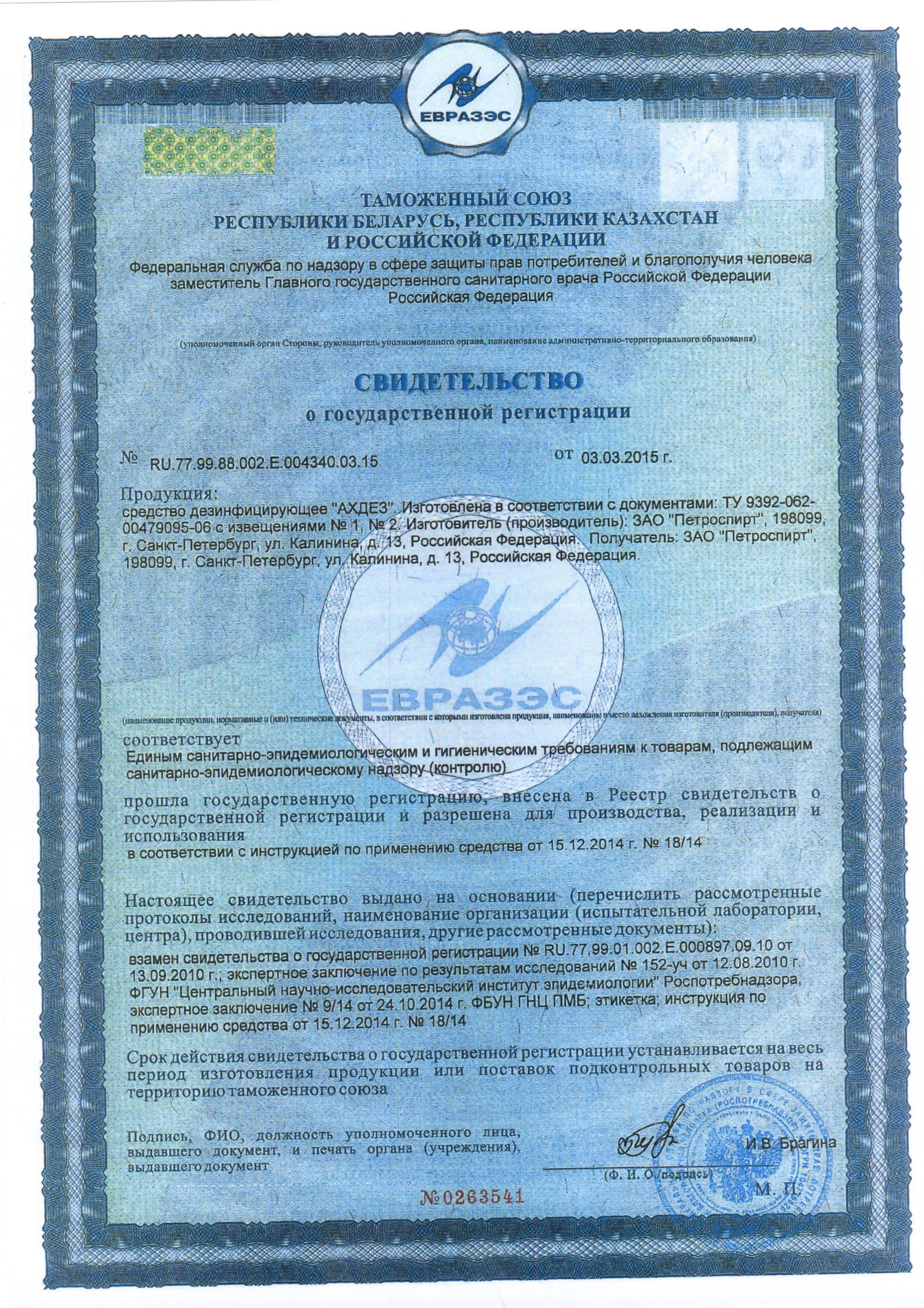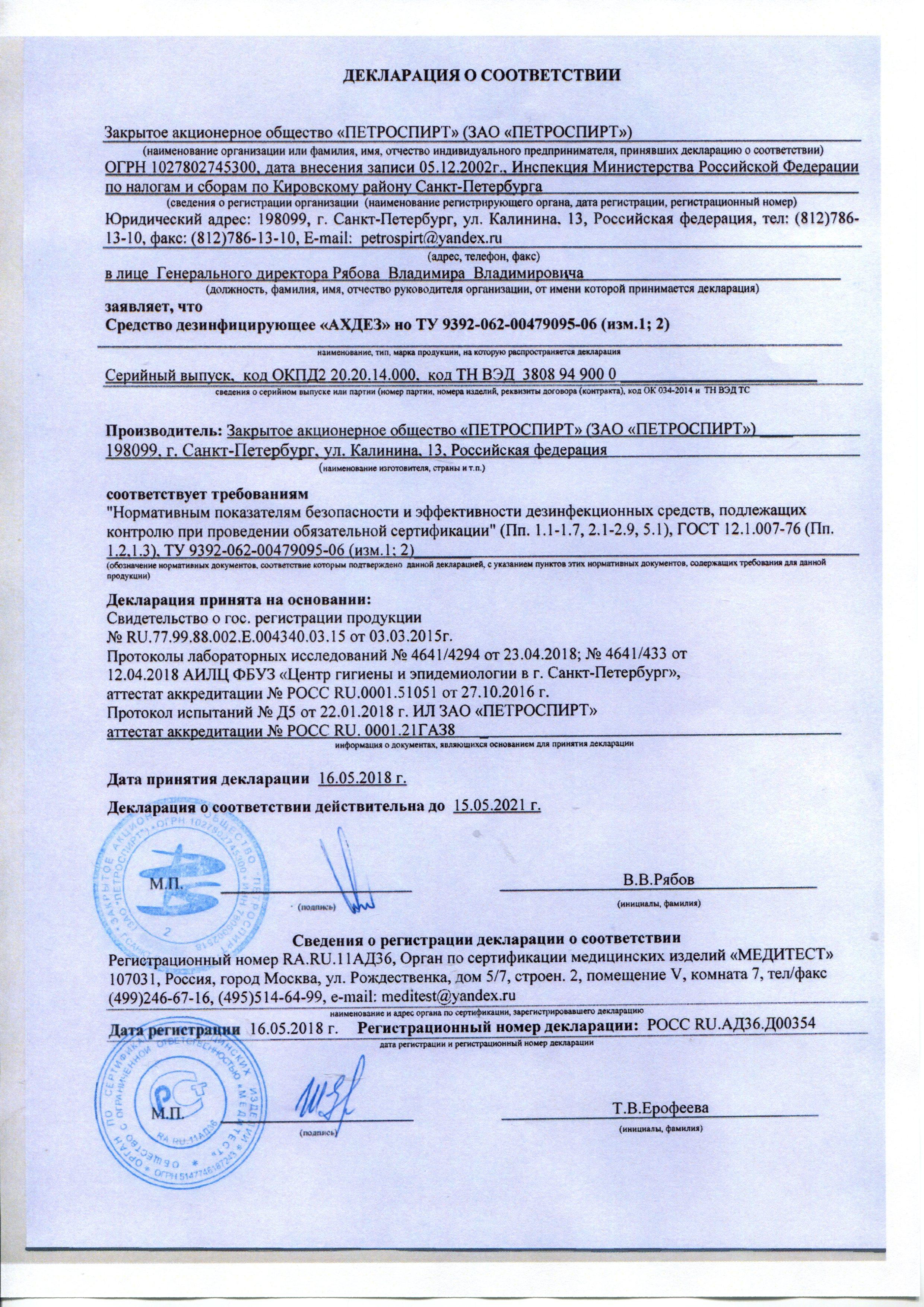 Сертификат на товар - Дезинфицирующее средство Dolphin Петролайт К-001 5 л