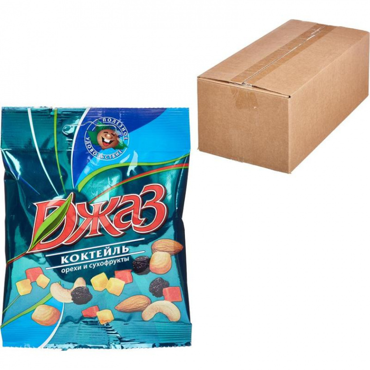 Коктейль «Джаз» — это настоящая ореховая классика! Мы создали его 25 лет назад, и он до сих пор является нашей визитной карточкой и одним из лидеров рынка. Только высококачественные ингредиенты, оптимальное соотношение орехов и сухофруктов в смеси (50/50) и бережная обжарка орехов — это то, за что вы выбираете именно коктейль «Джаз».