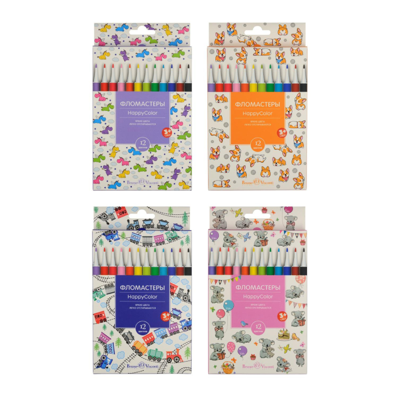 Традиционная форма детских фломастеров. Качественный фелт не махрится. Не скрипит при рисовании. Цветные или прозрачные (универсальные) колпачки. Для выразительных линий - яркие цвета. Пенал-подставка - фломастеры аккуратно лежат или стоят в пенале. Картонная коробка - для экономичного пополнения домашней коллекции фломастеров. На каждый день. Для дома и школы.