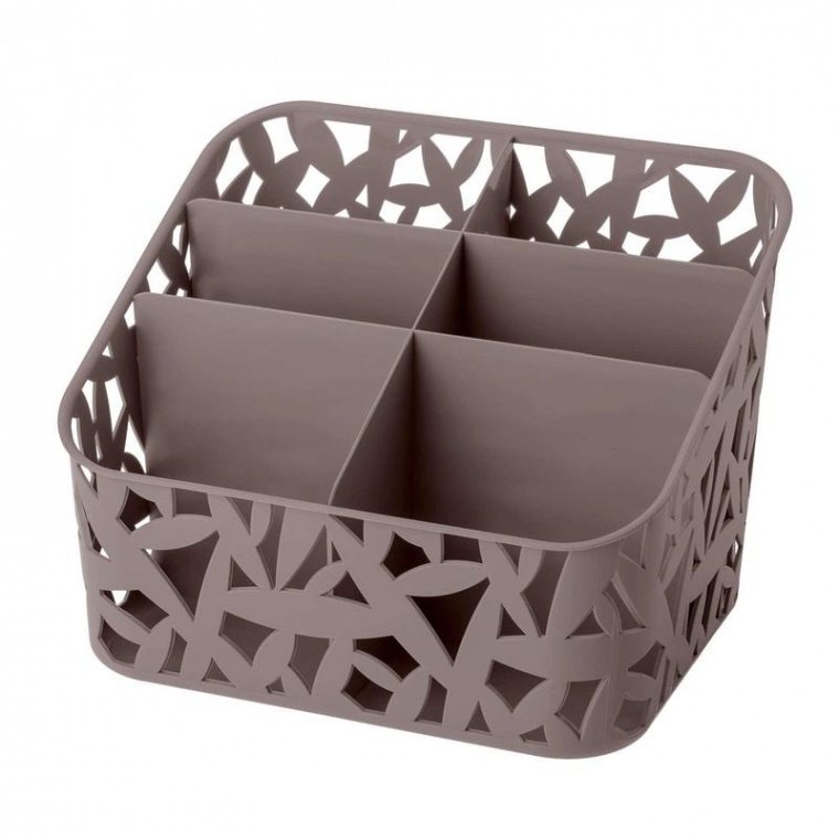 Подставка универсальная от EcoNova поможет поддерживать порядок на рабочем столе. Шесть секций разной высоты позволяют расставить в подставке тюбики, кисточки, канцтовары и другие предметы, храня их под рукой. Благодаря стильному, растительному орнаменту и современной цветовой гамме подставка впишется в интерьер любой комнаты, став ярким и приятным акцентом. Размер подставки 195×160×146 мм. Сделана из полипропилена коричневого цвета.