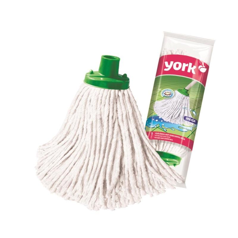 Насадка МОП веревочная York Мега хлопок/вискоза 30x11см белый/зеленый Удобная, большая насадка из хлопка с добавлением вискозы. Идеальная для мытья плитки, ламината и других плоских поверхностей. Насадка состоит из большого числа высококачественных хлопковых нитей, что делает ее эффективной и прочной. Хорошо собирает влагу. Можно использовать с химическими средствами или без них.Состав: 55% хлопок, 45% полиэстер.Размеры: 30x11x6,5 см.
