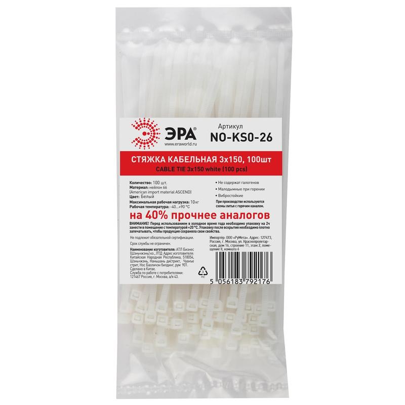 Стяжка Эра 150х3 мм белая 100 штук в упаковке (NO-KS0-26)