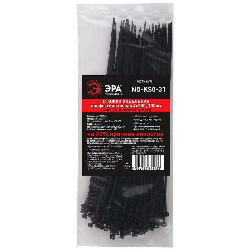 Стяжка Эра 200х4 мм черная 100 штук в упаковке (NO-KS0-31)