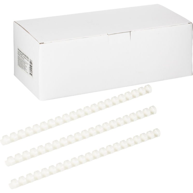 Пружины для переплета пластиковые предназначены для сшивания до 125 листов формата А4 при помощи брошюровщика. Позволяют вынимать и добавлять листы в готовый документ. Изготовлены из прочного пластика белого цвета, состоят из колец диаметром 14 мм. Поставляются по 100 штук в упаковке.