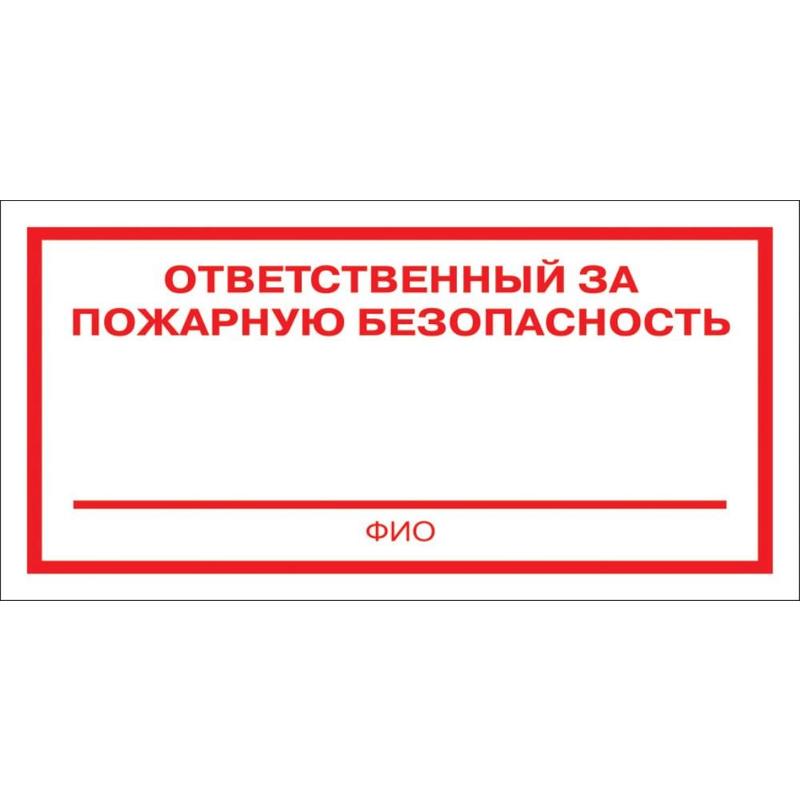 Знак безопасности Ответственный за пожарную безопасность F21 (200х100 мм, пленка ПВХ, 10 штук в упаковке)