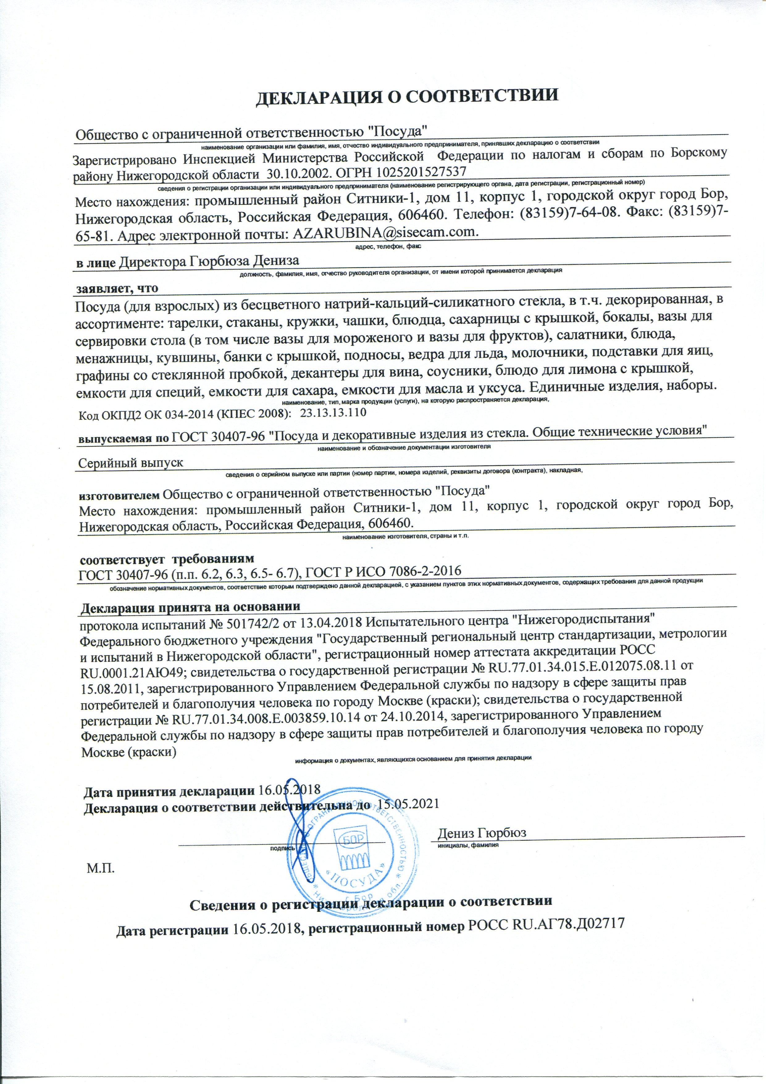 Сертификат на товар - Кувшин Pasabahce Касабланка стеклянный 1140 мл (артикул производителя 43614SLB)