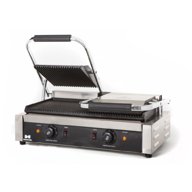 Прижимной гриль Hurakan HKN-PE44R предназначен для обжаривания стейков и сосисок, приготовления сэндвичей, полуфабрикатов, подогрева булочек, гамбургеров, хот-догов на предприятиях общественного питания и торговли. Высокая скорость приготовления достигается благодаря встроенным в обе части аппарата тепловым элементам, которые плотно прилегают к продукту. Модель оснащена регулируемыми термостатами, индикаторами нагрева и лотком для сбора жира. Корпус выполнен из нержавеющей стали.Внешний вид и/или характеристики товара могут быть изменены производителем в соответствии с производственным процессом.
