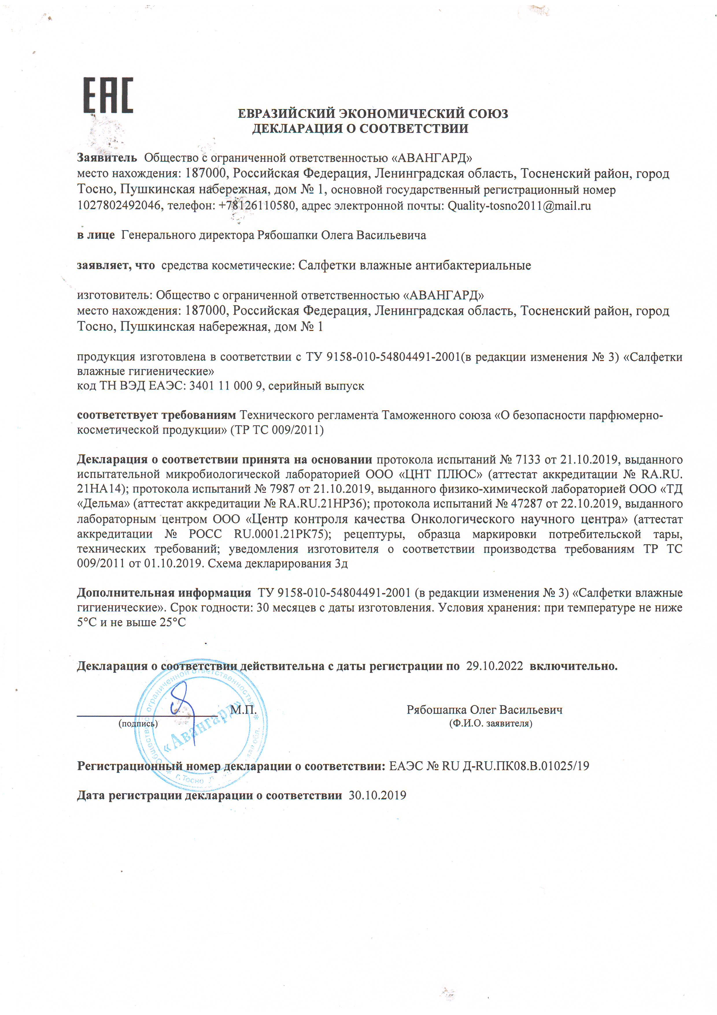 Сертификат на товар - Влажные салфетки антибактериальные Salfeti School 15 штук в упаковке