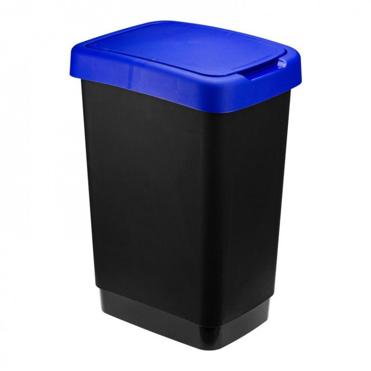 — синей крышки, которая фиксирует мусорный пакет и позволяет легко и быстро опустошить ведро и помыть его. Верхняя часть крышки — подвижная. Она проваливается при надавливании на переднюю ее часть. Крышка поднимается, если толкнуть вверх ручку-выступ. При необходимости, подвижная часть крышки может быть зафиксирована в вертикальном положении.