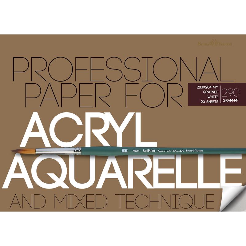 Блок-склейка для акварели и акрила Bruno Visconti А4 20 листов. Отделка обложки - золотая фольга. Склеенный с трёх сторон блок универсальной бумаги, европейского производства, предназначенной, в первую очередь, для акварели и акриловых красок по-мокрому, но прекрасно подходящая для любой техники, от гуаши и темперы до карандаша, угля и пастели до туши - любой материал выглядит великолепно на этой бумаге с тонкой натуральной фактурой, жесткая подложка.