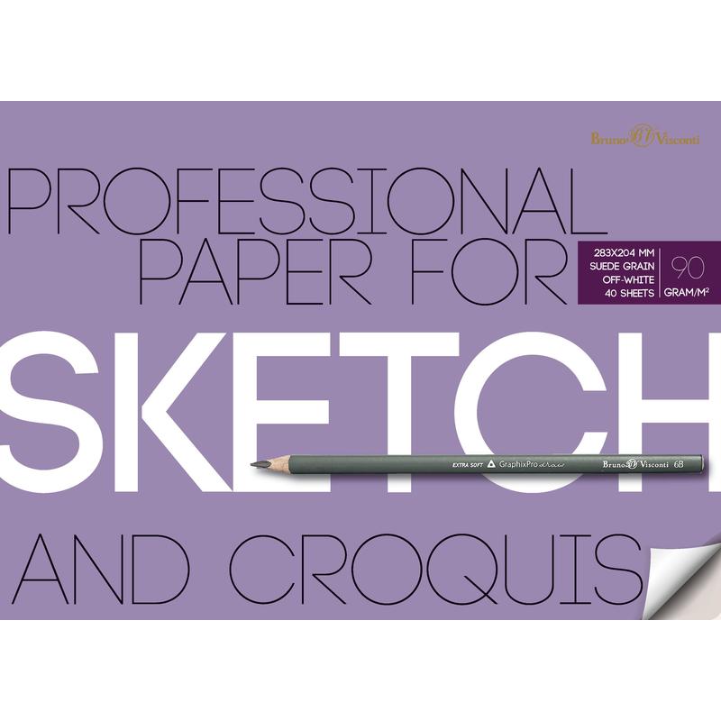 Альбом для набросков Bruno Visconti А4 40 листов. Отделка обложки - золотая фольга. Жесткая подложка. Великолепное решение для зарисовок 'на бегу'. Тонкая, но очень прочная бумага цвета топлёных сливок с нежной, 'замшевой' текстурой идеально подойдёт для графитовых или цветных карандашей, для пастели и сепии, на ней великолепно смотрятся тушь, фломастер, роликовая или даже обычная шариковая ручка.