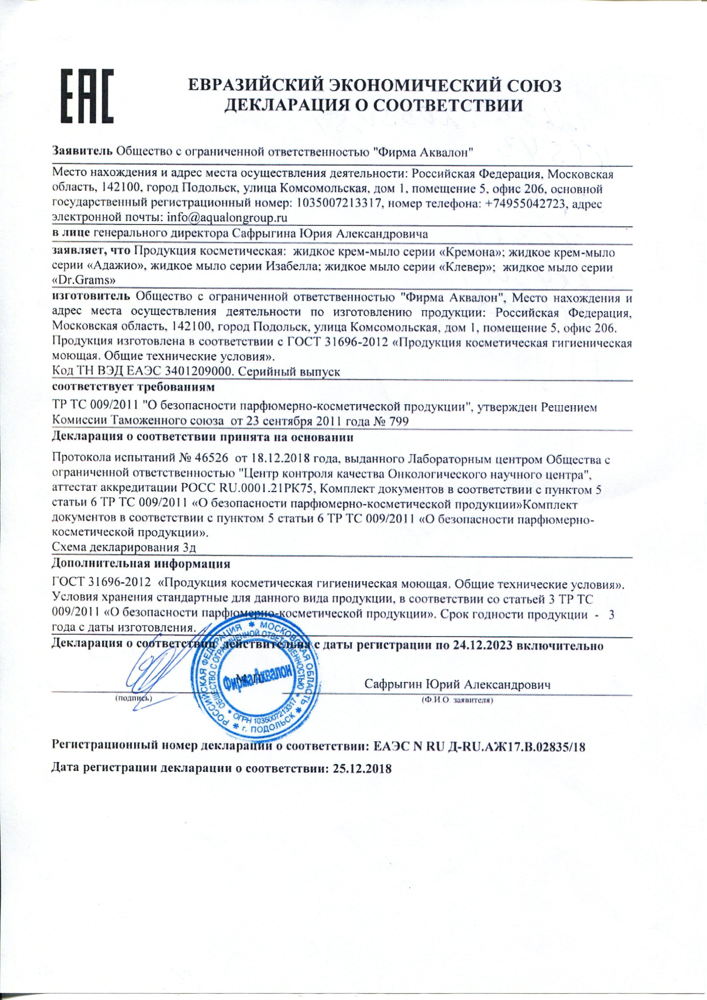 Состав: Очищенная вода, лауретсульфат натрия (5-10%), диэтаноламид жирных кислот кокосового масла (< 5%), хлорид натрия (< 5%), лимонная кислота (< 5%), красители (< 1%), парфюмерная композиция (< 1%), 2-бром-2-нитропропан-1,3-диол (< 1%), триклозан