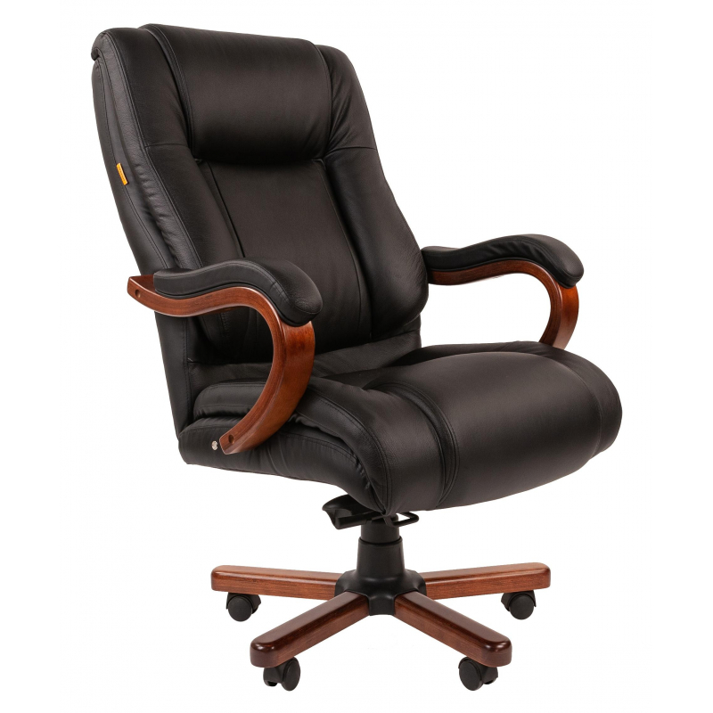 Кресло для руководителя Chairman 503 цвет черный обито натуральной кожей с компаньоном. Рабочие и лицевые части выполнены из натуральной кожи, боковые и задние части - из экокожи. Крестовина - металл с деревянными накладками. Подлокотники выполнены из дерева с накладками из натуральной кожи. Механизм качания Top Gun - с возможностью фиксации кресла в рабочем положении. Имеет регулировку кресла по высоте (газлифт). Изображения товаров на сайте не могут гарантировать точную цветопередачу.