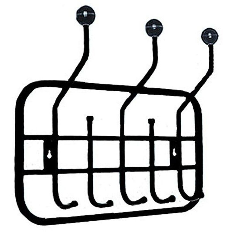 Настенная вешалка размером 42x34 см выполнена из металла с покрытием черного цвета. Не занимает много места, подходит для дома и офиса. Имеет пять крючков для одежды и три рожка для головных уборов. Вешалка оснащена держателями для крепления к стене. Гарантия - 12 месяцев.Изображения товаров на сайте не могут гарантировать точную цветопередачу.