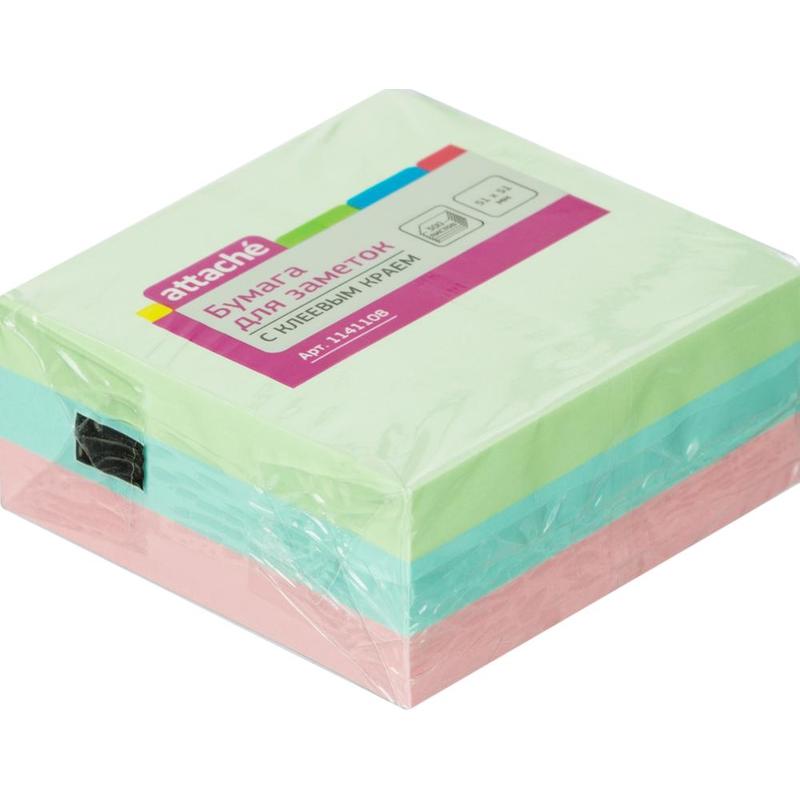 Стикеры Attache 51х51 мм пастельные 3 цвета (1 блок, 300 листов)