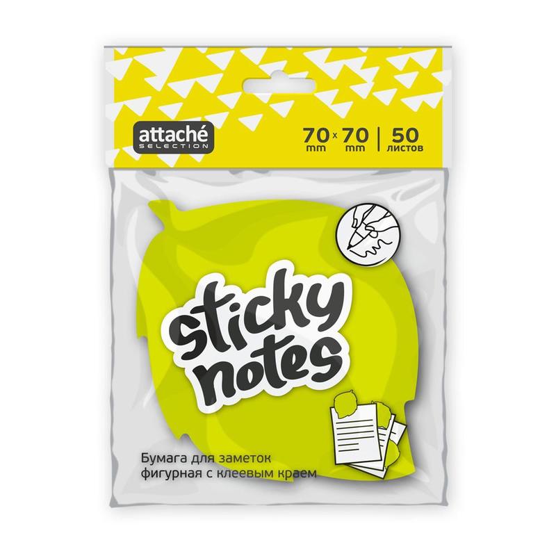 Стикеры фигурные Attache Selection Листок 70х70 мм неоновые зеленые (1 блок, 50 листов)