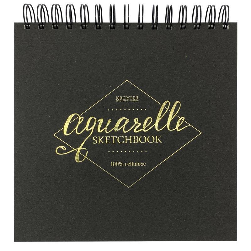 Альбом для рисования акварелью Kroyter Aquarelle 195x195 мм 30 листов. Крепление - спираль сверху, блок бумага акварельная без добавления кислот и оптических отбеливателей, плотность - 200 г/кв.м, 100% целлюлоза, крупное зерно, твердый переплет, тиснение фольгой.