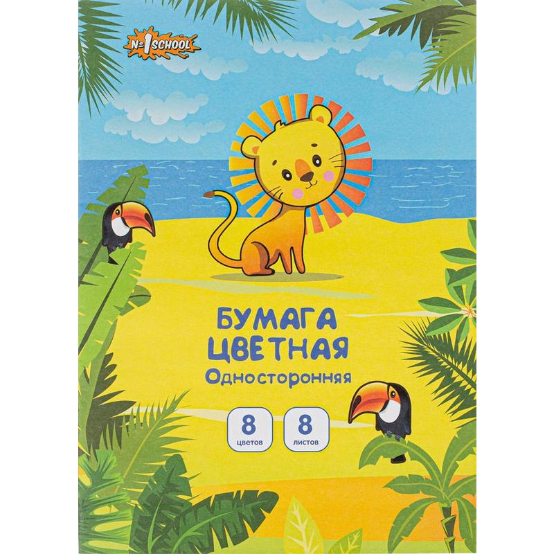 Бумага цветная №1 School Джунгли (А4, 8 листов, 8 цветов, газетная)