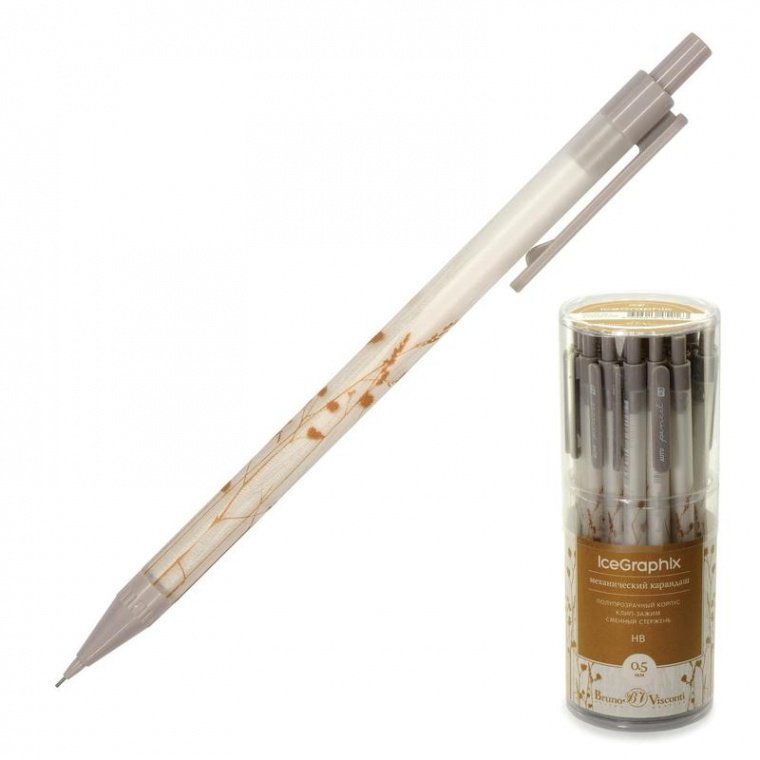 Карандаш механический Bruno Visconti Ice Graphix «Полевый цветы» с толщиной линии письма 0,5 мм. Выполнен в непрозрачном пластиковом корпусе с клипом. Прочный грифель, жесткость — HB. Корпус прорезиненный.