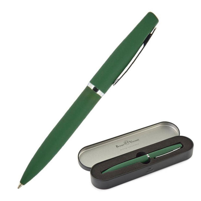 Ручка шариковая автоматическая Bruno Visconti Portofino в футляре. Простой пишущий механизм выполнен из высококачественных материало. Вид механизма - поворотный. Корпус зеленого цвета выполнен из качественного металла. Пигментные чернила Dokumental синего цвета. Толщина линии письма - 1 мм. Металлический футляр, размер (ДxШxВ): 178x45x20 мм. Возможно нанесение логотипа. Производство: Китай.