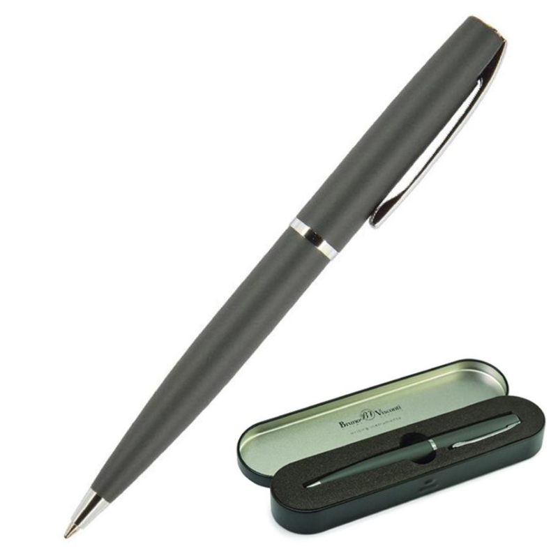 Ручка шариковая автоматическая Bruno Visconti Sienna в футляре. Простой пишущий механизм выполнен из высококачественных материало. Вид механизма - поворотный. Корпус серого цвета выполнен из качественного металла. Толщина линии письма - 1 мм. Цвет чернил - синий. Металлический футляр, размер (ДxШxВ): 178x45x20 мм. Возможно нанесение логотипа. Производство: Китай.