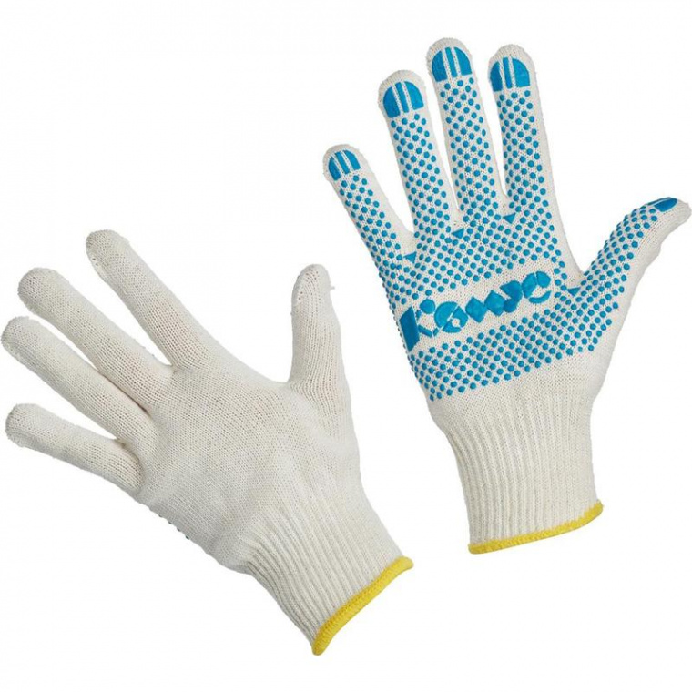 Универсальные рабочие перчатки хб с покрытием ПВХ предназначены для защиты рук от мелких механических повреждений и общих производственных загрязнений. Рабочие перчатки изготовлены из хлопчатобумажной пряжи с покрытием из поливинилхлорида с нанесением рисунка на внутреннюю сторону перчатки. Покрытие ПВХ помогает обеспечить плотный захват и предотвращает соскальзывание детали. Трикотажные перчатки с манжетой на резинке обеспечивают плотное прилегание к руке. Оптимальны для складских, садовых и ремонтных работ. Положите их в автомобиль и, в случае необходимости, вы защитите свои руки от травм и грязи. Основа: 60% хлопок, 40% полиэфир; вес пряжи — 116,8 текс. Материал и рисунок покрытия: ПВХ, точка. Соответствует ТР ТС 019/2011. Количество пар в упаковке: 5. Количество упаковок в транспортном коробе: 40. Размер: 8
