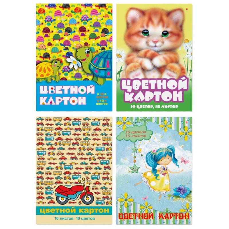 Картон цветной Альт Мультики (А4, 10 листов, 10 цветов, немелованный)