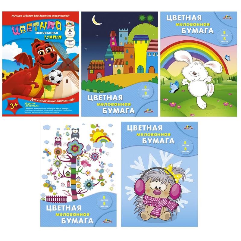 Бумага цветная Апплика (А4, 8 листов, 8 цветов, мелованная)