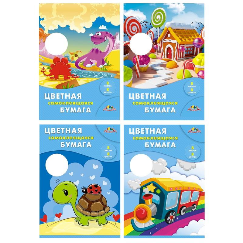 Бумага цветная Апплика (А4, 8 листов, 8 цветов, мелованная, самоклеящаяся)