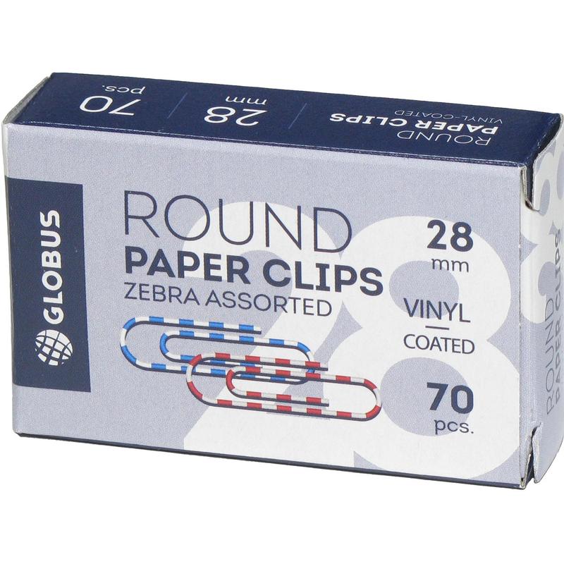 Скрепки Глобус Зебра цветные полимерные 28 мм (70 штук в упаковке)